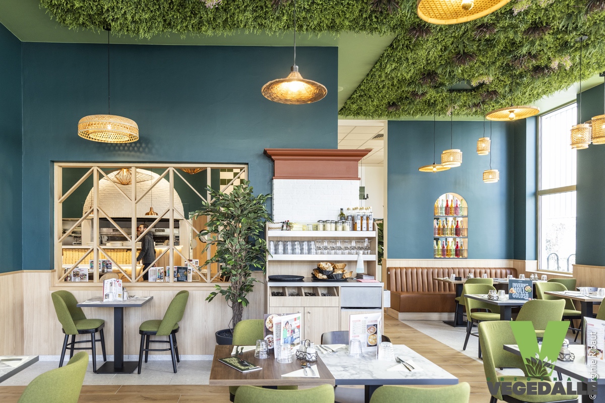 - Effet esthétique : apporte une ambiance naturelle, chaleureuse, visuelle et immersive pour restaurants, commerces, bureaux, salles de sport ou autres lieux publics sans perte de surface de vente au sol.
