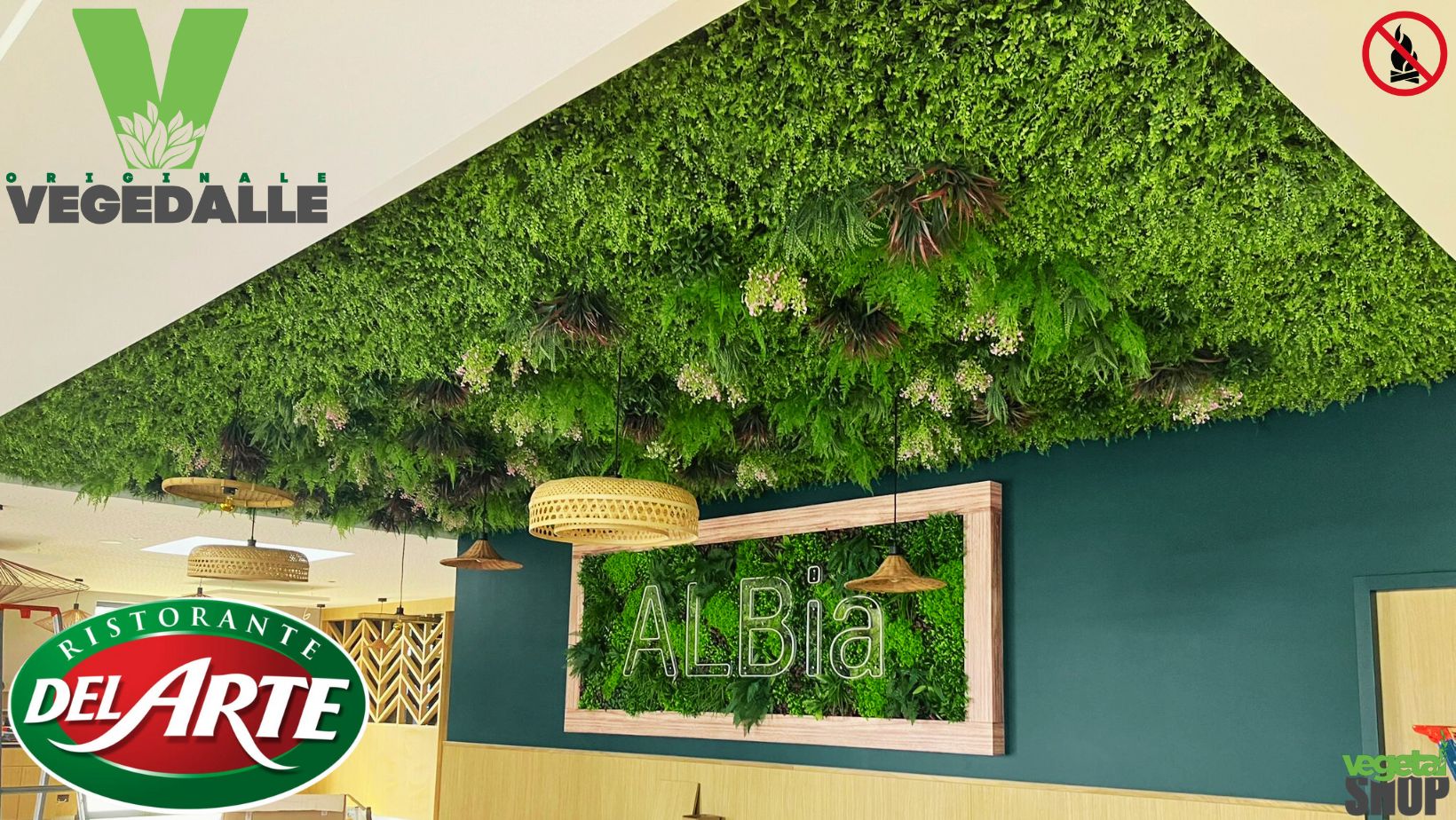 - Le support est une dalle Rockfon exclusivement est conçu pour faux-plafond, et le feuillage artificiel est traité 100% ignifugé M1 fixé à la main (non collé).